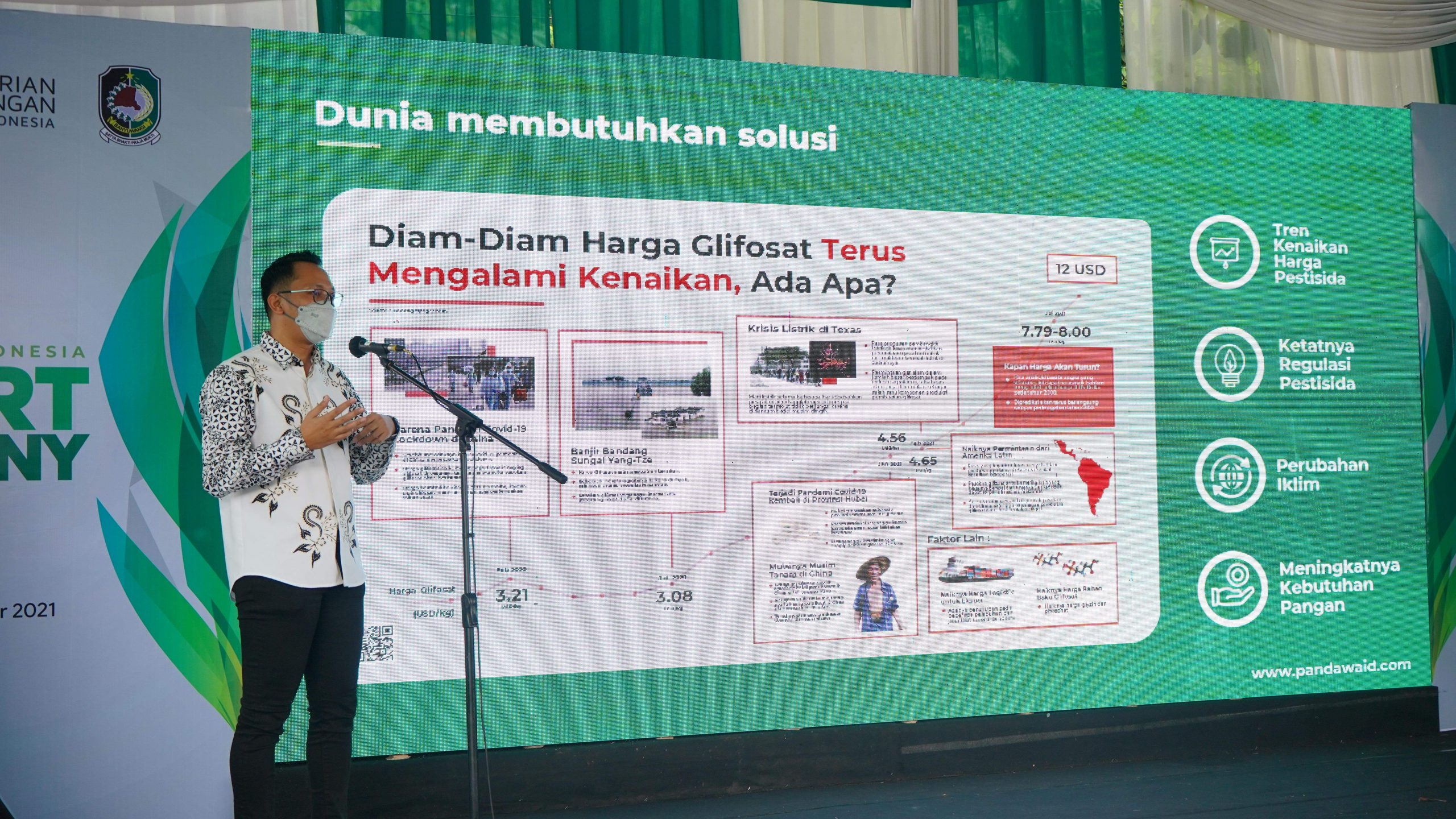 “Dunia saat ini membutuhkan solusi. Herbisida saat ini sedang mengalami kenaikan harga yang sangat signifikan. Salah satu contohnya adalah kenaikan harga glifosat hingga 3 kali lipat yang hingga saat ini dampaknya dialami oleh petani kita. Kenaikan harga ini disebabkan oleh betapa tergantungnya kita terhadap produksi di China, sehingga disaat terjadinya permasalahan di rantai pasok dunia, petani kita jadi tidak punya piliahan selain menerima kenaikan harga yang berlipat-lipat tersebut.